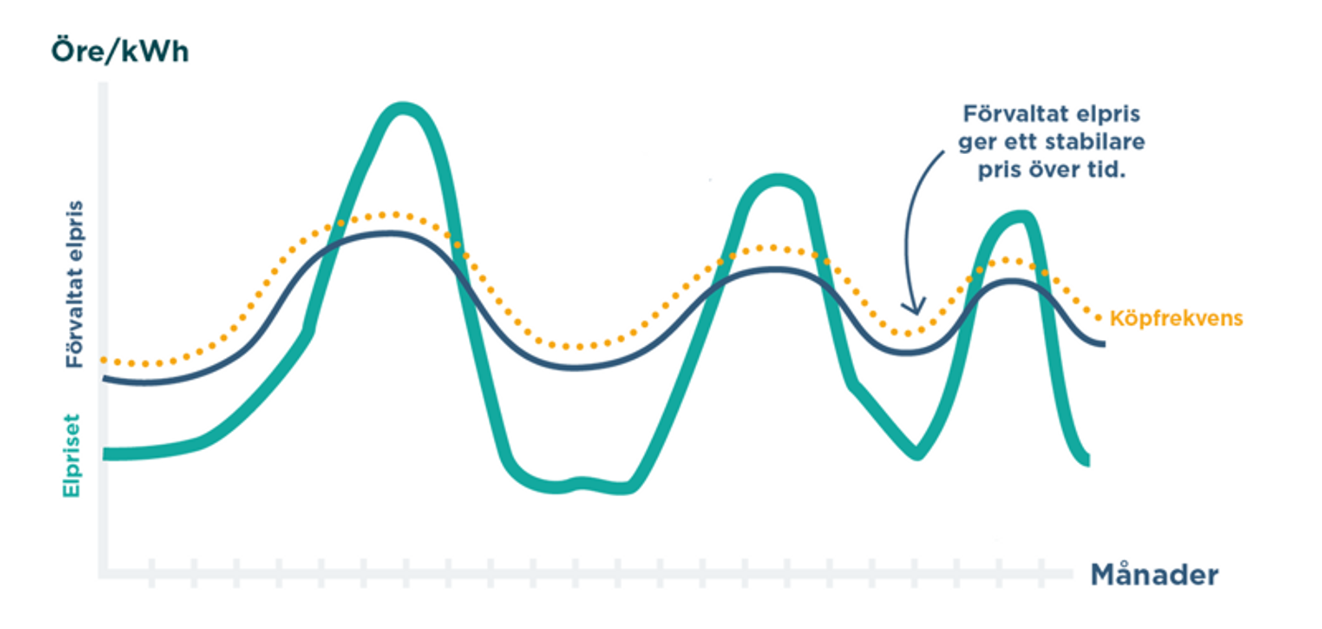 I förvaltat elpris köps el in systematiskt och utspritt över tid:
