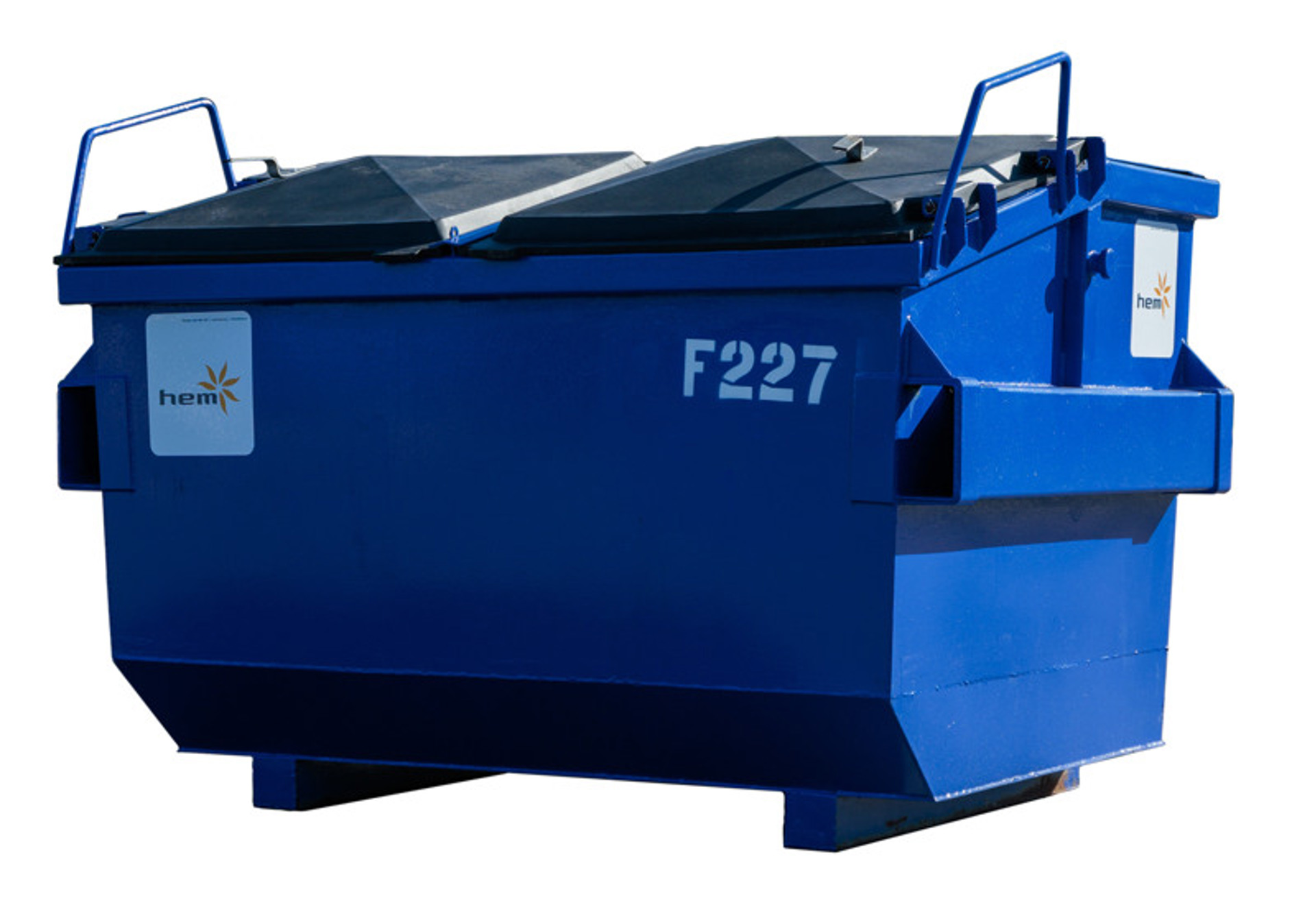 En täckt container på 3m³ som är låsbar för fraktionerna energiåtervinning & wellpapp. Frontlastarcontainern är en praktisk container som töms och vägs på plats direkt i bilen. Det gör den både effektiv och betyder att ni alltid har tillgång till containern.